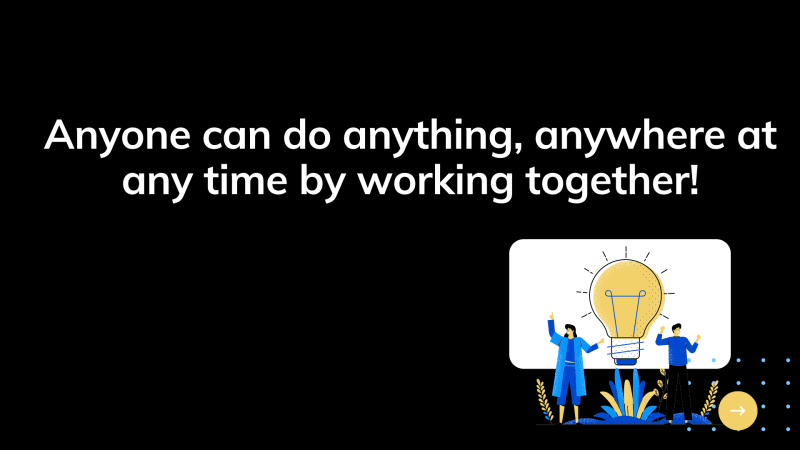 Dieser Satz will dazu motivieren: Alle kรถnnen alles von รผberall und zu jederzeit erreichen wenn sie zusammenarbeiten.